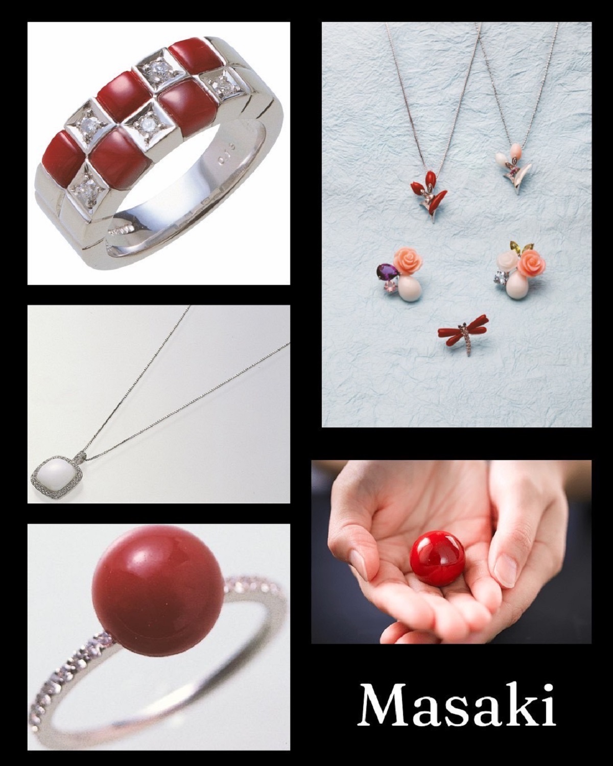 ジュエリーやお念珠を取り扱っている普段とは違い、この度は世界最高品質の血赤珊瑚のとれる高知よりたくさんの宝石、ジュエリー、彫刻や置物などまで展示します。